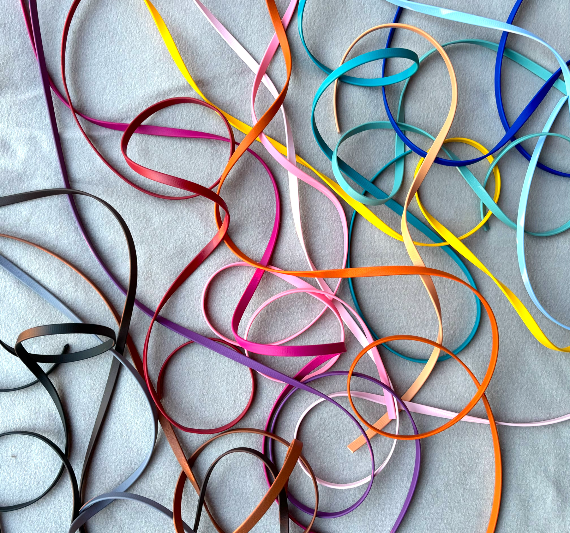 Valmistamme tuotteita 9 mm leveästä BioThanesta (vetolujuus 160 kg), ja se sopii parhaiten pennuille sekä pienille ja keskikokoisille koirille. Tämä kapeahko hihna on kädessä todella mukavan ja pehmeän tuntuinen.
